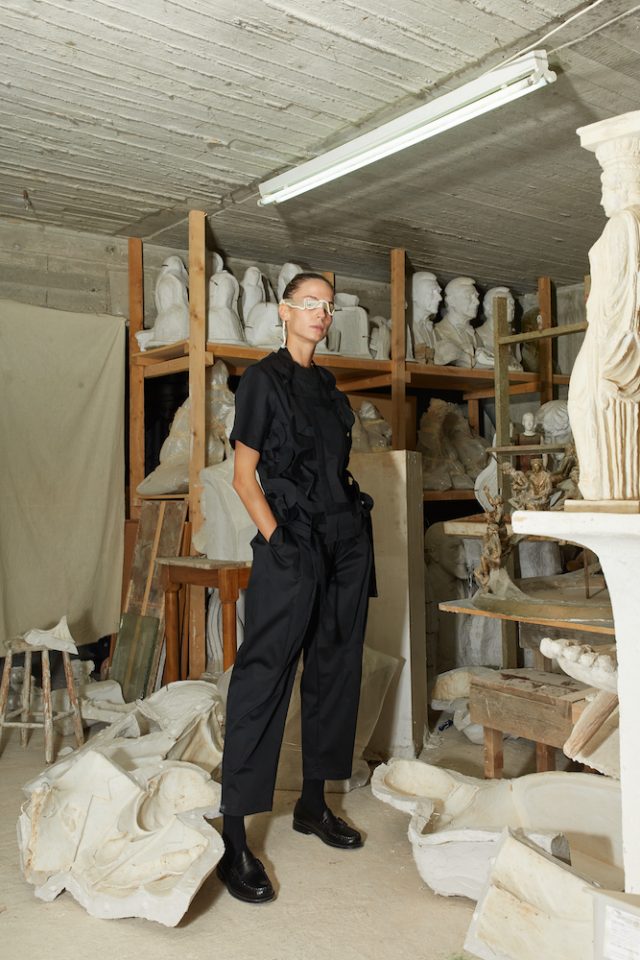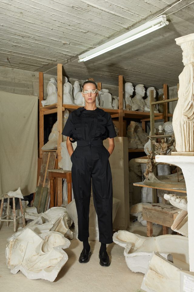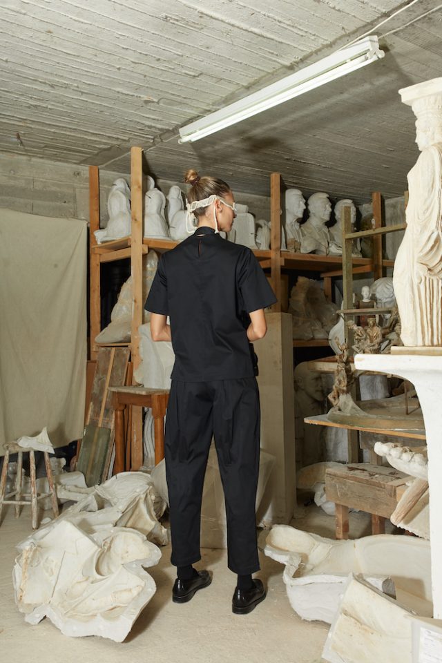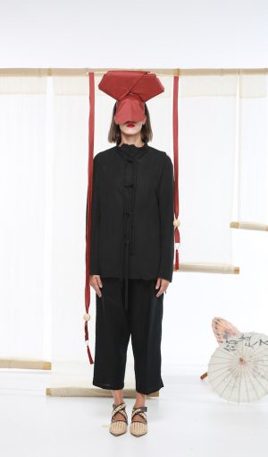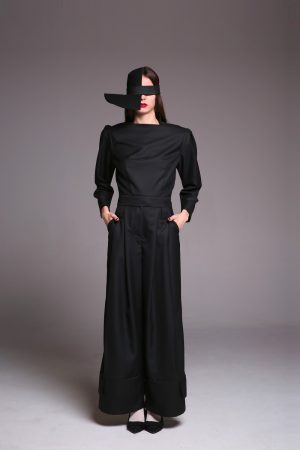 Black Fine Cotton Trousers. Fine Cotton is a Light-weight, Non-stretchy fabric. 100% High Quality Cotton. Pleats through front and back. Concealed zip and button fastening. Two side slit pockets. High-rise. Tapered leg. French seams. Cut for a slightly loose fit. Machine wash 30°C. Model is 180cm and is wearing a size S.
