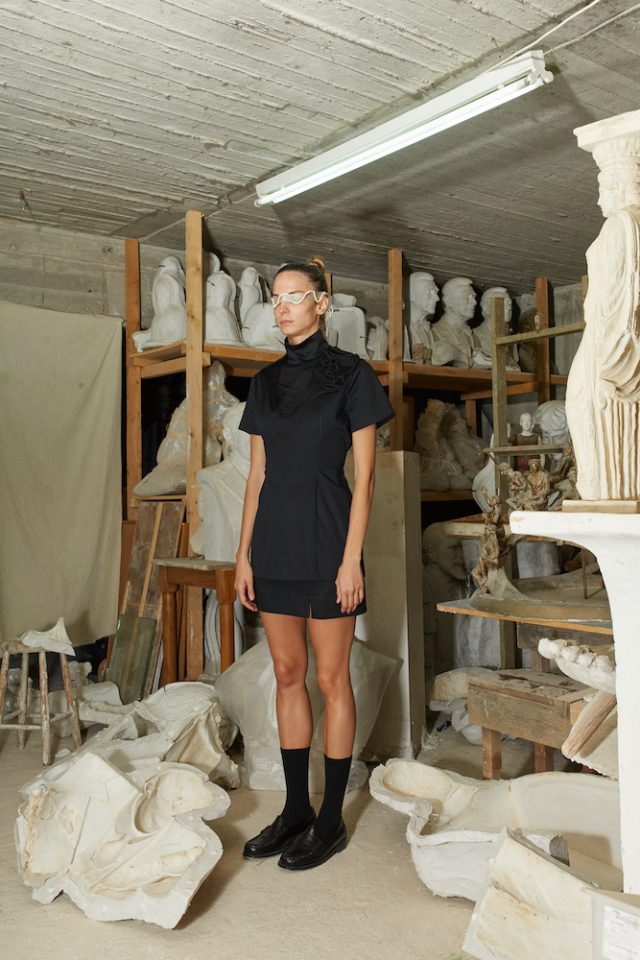 Black Fine Cotton Blouse. Fine Cotton is a Light-weight, Non-stretchy fabric. 100% High Quality Cotton ; Embellishments 100% Silk. Stand collar. Structured side slit. Unique handwoven artifacts by Studio Asevia embellished through front and back. Button-fastening keyholes and concealed zip fastening at back. French seams. Cut for a slim fit. Specialist clean only. Model is 180cm and is wearing a size S. Due to the unique approach for each piece, slight differences may occur. Please allow 20 days for your order to ship.