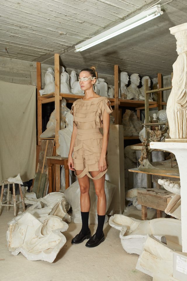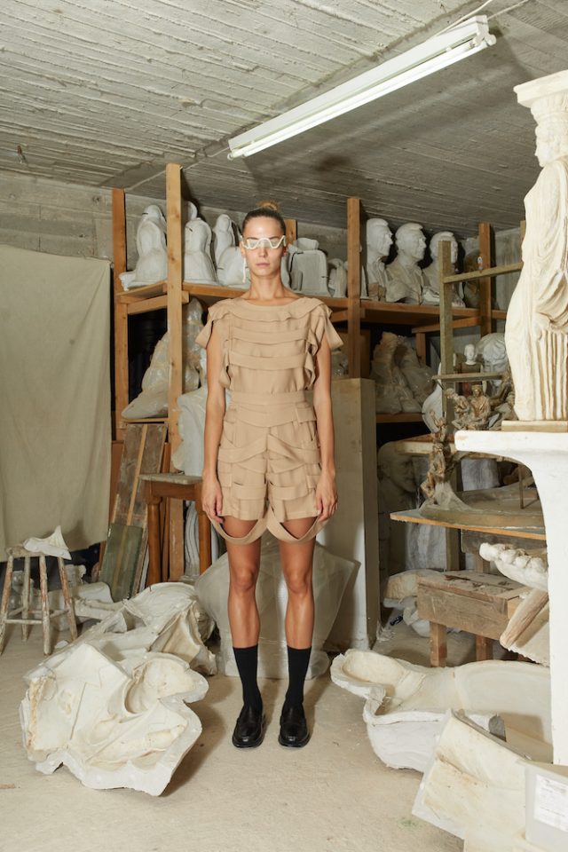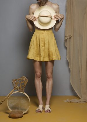 Sand Double Weave Tencel Shorts. Double Weave Tencel is an environmentally friendly regenerated fabric from wood cellulose and is a Thick, Mid-weight, Non-stretchy fabric. 100% Tencel. Basket weaving inspired panels through front. High-rise. Concealed zip at back. French seams. Fits true to size. Machine wash 30°C. Model is 180cm and is wearing a size S.