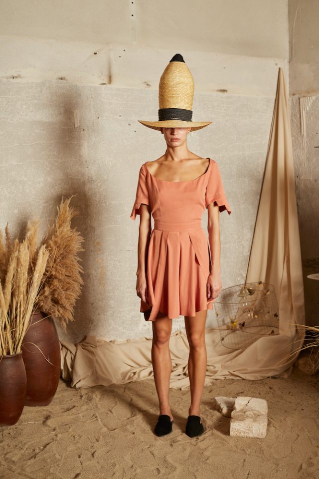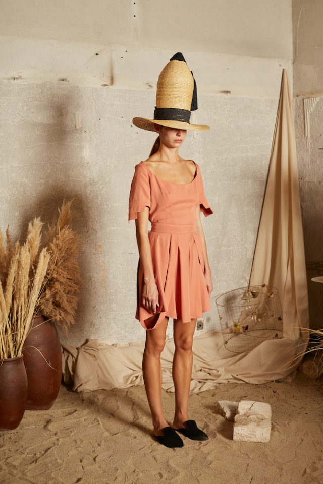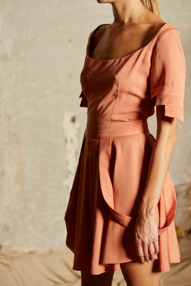 Salmon Pink Tencel Jumpsuit. Tencel is an environmentally friendly regenerated fabric from wood cellulose and is a Mid-weight, Non-stretchy fabric. 100% Tencel. Wide Scoop neckline. Structured panels at sleeves. T-shaped strap at open back. Pleats through front and back. Straps through front and back. Two side slit pockets. Concealed zip and button fastening at back. French seams. Cut for a slightly loose fit. Machine wash 30°C. Model is 180cm and is wearing a size S. ΑΤΤΕΝΤΙΟΝ = We have replaced the Salmon Pink colour with Dusty Pink. Please see last image for colour reference.