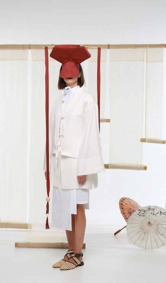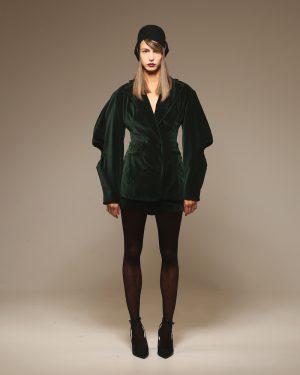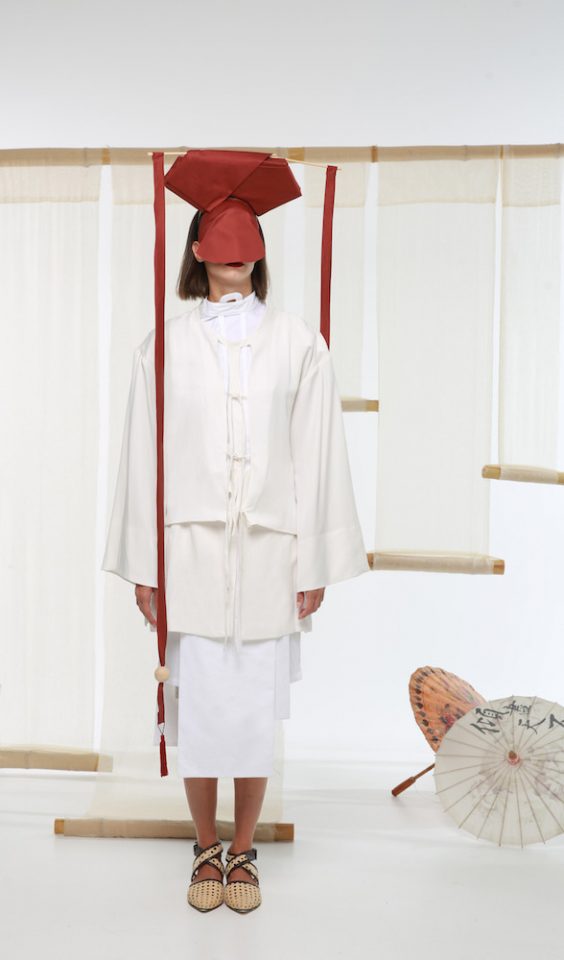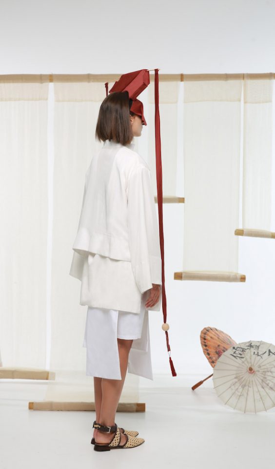 Ivory Tencel Jacket. Tencel is an enviromentally friendly regenerated fabric from wood cellulose and is a Mid-weight, Non-stretchy fabric. 100% Tencel. Cut-outs at front. Ribbon fastenings through front. Panels at front and back. Trumpet sleeves. Two side slit pockets at panels. French seams. Cut for a loose fit. Machine wash 30°C. Model is 180cm and is wearing a size M