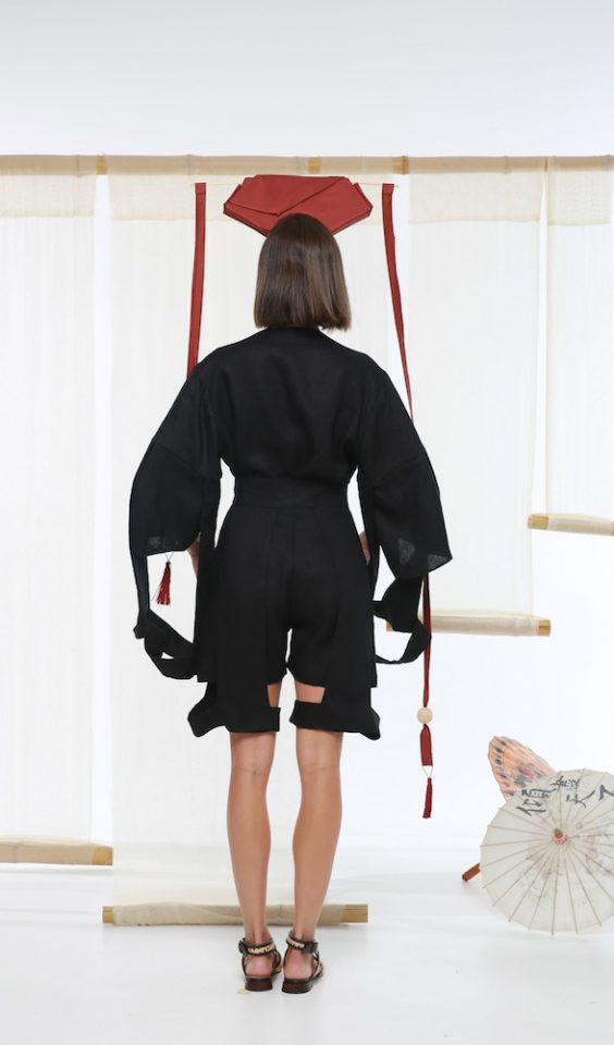 Black Linen Shorts. Linen is a Light-weight, Non-stretchy fabric. 100% Linen. Panels at front. Concealed zip and ribbon fastening. Two side slit pockets. Mini-length. High-rise. French seams. Cut for a slightly loose fit. Machine wash 30°C. Model is 180cm and is wearing a size S