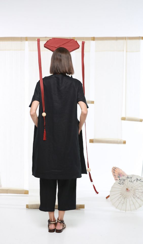Black Linen Blouse. Linen is a Light-weight, Non-stretchy fabric. 100% Linen. Cut-out at front. Ribbon fastening at front. Embroidery at sleeves and front. Two large side vents. French seams. Cut for a slightly loose fit. Machine wash 30°C. Model is 180cm and is wearing a size M