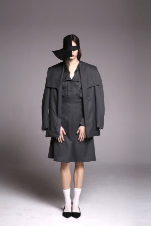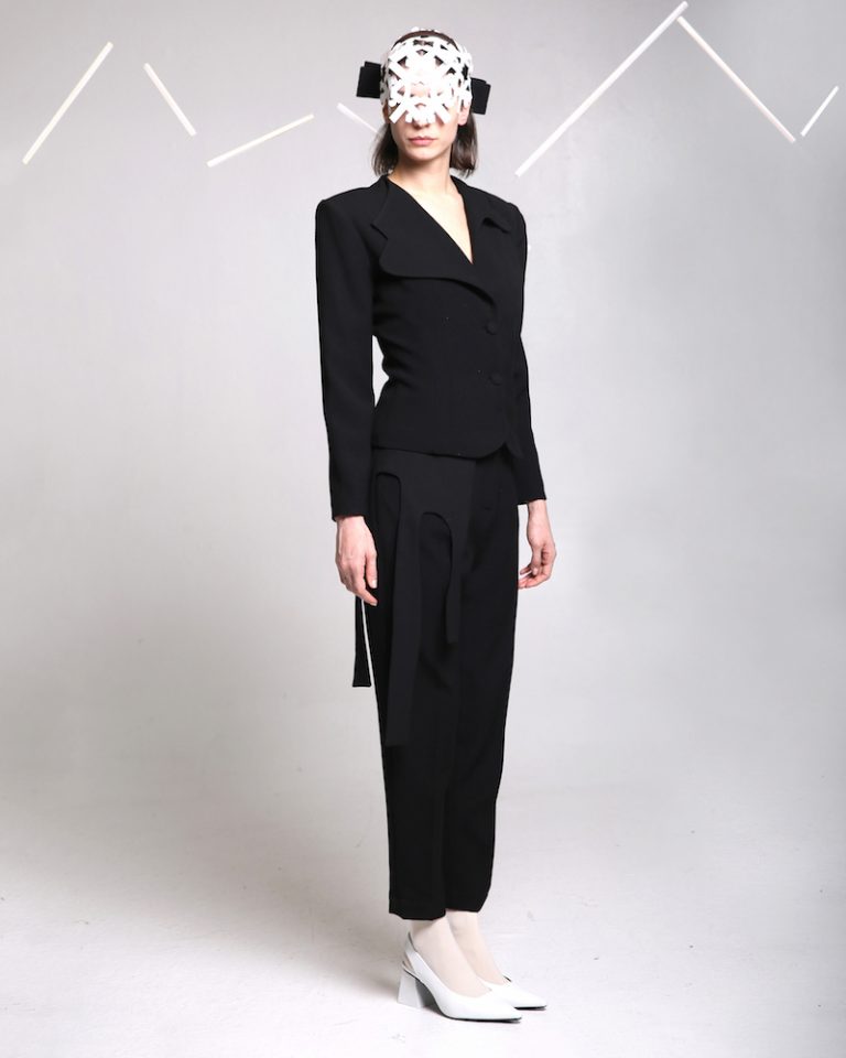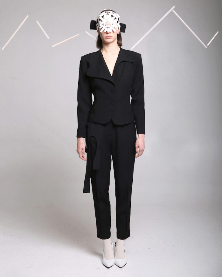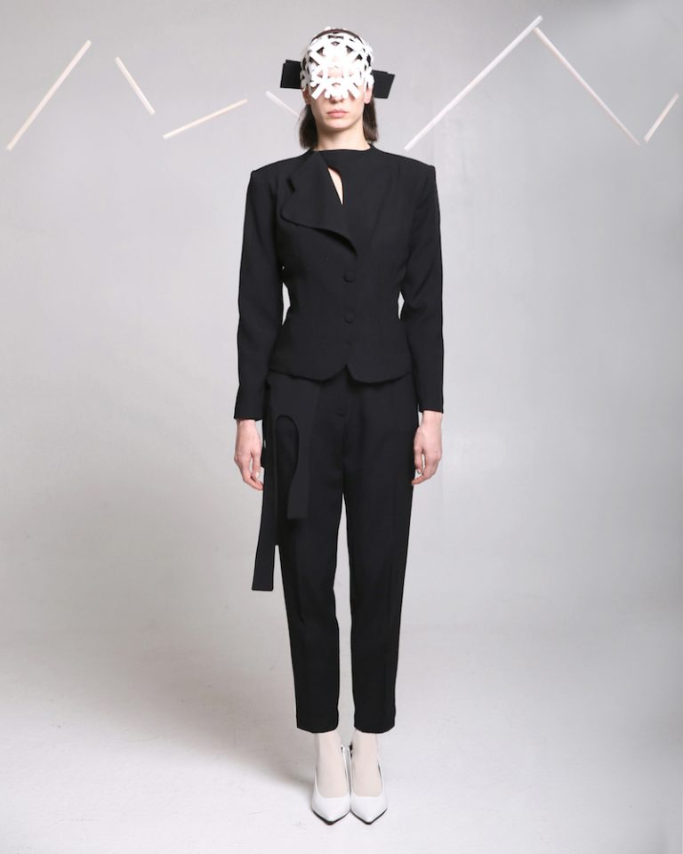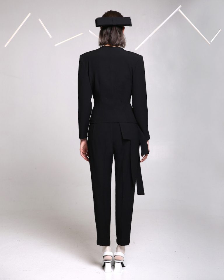 Black Wool Jacket. Wool is a Mid-weight, Non-stretchy fabric. 100% Wool ; Lining 100% Viscose. Asymmetrical lapels. Button fastenings through front. Two internal pockets. Padded shoulders. Cut for a slim fit. Fully lined. Dry clean. Model is 180cm and is wearing a size M