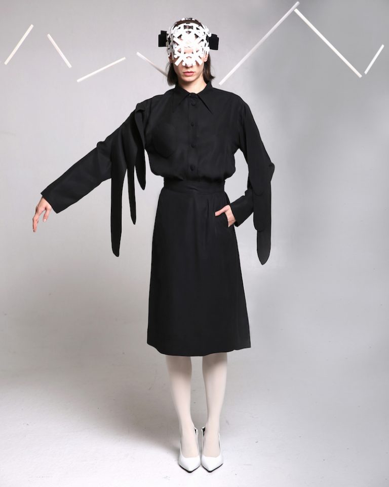 Black Tencel Shirt. Tencel is an enviromentally friendly regenerated fabric from wood cellulose and is a Mid-weight, Non-stretchy fabric. 100% Tencel. Panels at sleeves. Pointed collar. Round chest pocket. Button fastenings through front. French seams. Cut for a slightly loose fit. Machine wash 30°C. Model is 180cm and is wearing a size M