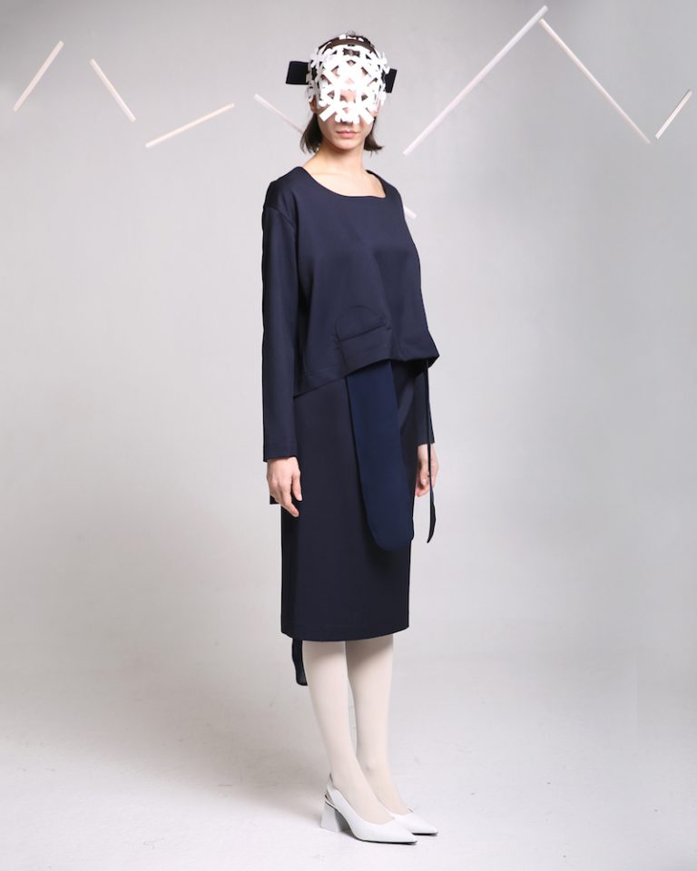 Navy Blue Wool Skirt with Silk detail. Wool is a Mid-weight, Non-stretchy fabric. Silk is a Light-weight, Non-stretchy fabric. Fabric 1: 100% Wool ; Fabric 2: 100% Silk. Wool and silk panels at back. Concealed zip and button fastening at side. High-rise. Midi-length, sits at the waist. Back vent. French seams. Cut for a slim fit. Dry clean. Model is 180cm and is wearing a size M